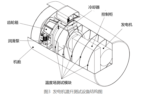 發(fā)電機(jī)組的溫升是指某一點(diǎn)的溫度和參數(shù)溫升之差,其設(shè)備外形如圖1所示。發(fā)電機(jī)組溫升是指發(fā)電機(jī)某部件和周圍冷卻介質(zhì)溫度的差別。溫升過(guò)高,則表示發(fā)電機(jī)有故障。也就是說(shuō),發(fā)電機(jī)組上升的溫度中超過(guò)周圍空氣的溫度的這一部分溫度稱為溫升,溫升的單位為K。在國(guó)家標(biāo)準(zhǔn),旋轉(zhuǎn)電機(jī)定額和性能中明確規(guī)定:發(fā)電機(jī)組在額定負(fù)載下長(zhǎng)期運(yùn)行達(dá)到熱穩(wěn)定狀態(tài)時(shí),其極限溫度為130℃,考慮其風(fēng)冷器的出口溫度為40℃,則發(fā)電機(jī)組繞組的最大允許溫升為85K,但是在實(shí)際運(yùn)行中,由于減溫計(jì)可能存在一定的誤差,所以發(fā)電廠實(shí)際運(yùn)行中所控制的溫升為75K。在運(yùn)行過(guò)程中,同步發(fā)電機(jī)溫度或溫升過(guò)高的原因包括以下方面: