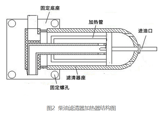 柴油濾清器管狀加熱器如圖2所示,包括濾清器濾座,密封圈,連接有固定塊,擋塊,擋塊的頂部固定連接有電源線,電源線的頂端貫穿濾清器濾座并延伸至濾清器濾座的外部,擋塊的底部固定連接有出油管,康明斯柴油加熱器出油管的表面開設有進油口。柴油加熱器通過設置擋塊、電源線、出油管、進油口、加熱管、進油管和溫度傳感器的配合使用,使柴油濾清器管狀加熱器油溫檢測準確,柴油濾清器管狀加熱器加熱元件的熱量能夠充分的發(fā)散,且能夠使油料加熱更均勻,能夠精確的感應到實時的油溫,有利于康明斯用戶的使用。